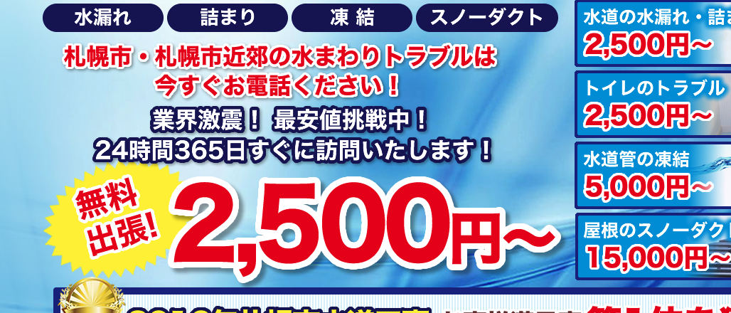 そのような方に向け、出張無料で業界最安値に挑戦しているオススメの札幌 水道修理を紹介しますので、ぜひ参考にしてください。